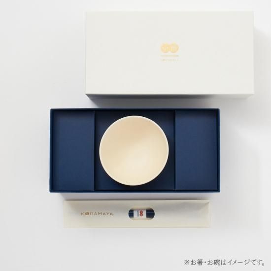 ギフトボックスはアイボリーとネイビーが優しくマッチした上品で柔らかい雰囲気が伝わるよう、素朴な質感の紙素材で作りました。